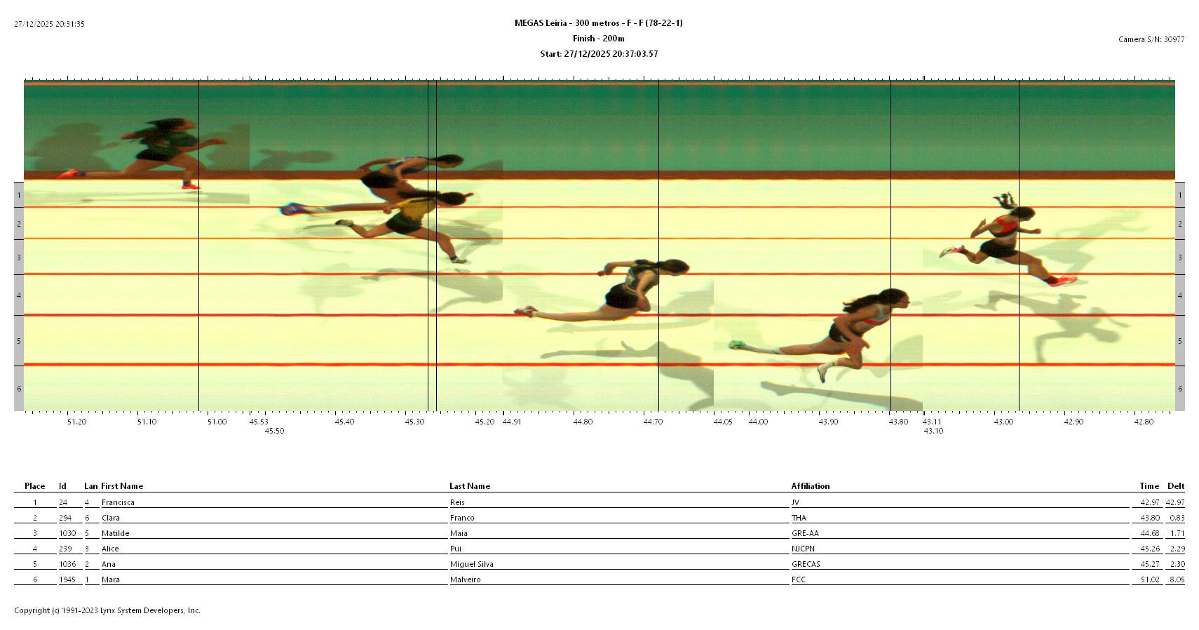 | 1 | 24 | Francisca Reis |